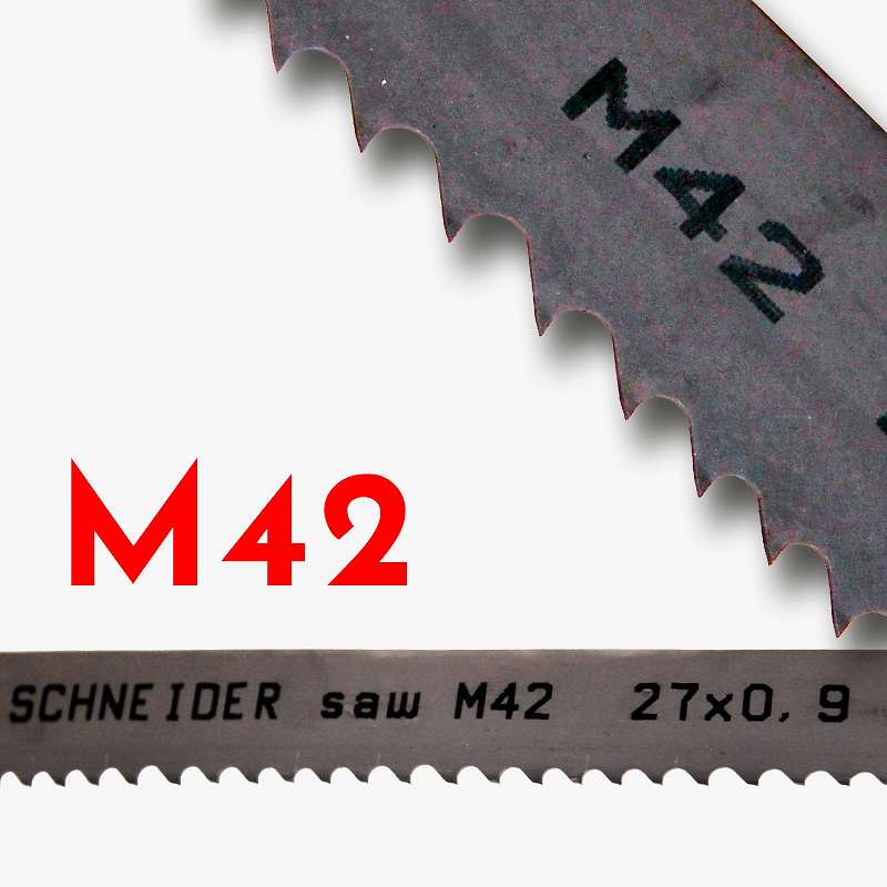 Geniş kullanım alanına sahip, verimli ve dayanıklı M42 bimetal şerit testereler , Demir , Alüminyum , Teknik plastikler , Pirinç gibi her türlü yumuşak metalin kesilmesinde üretim ve imalat atölyelerinde kullanılmaktadır.68 HRc sertliğinde sağlam aşınma direncine ve uzun bıçak ömrüne sahiptir.