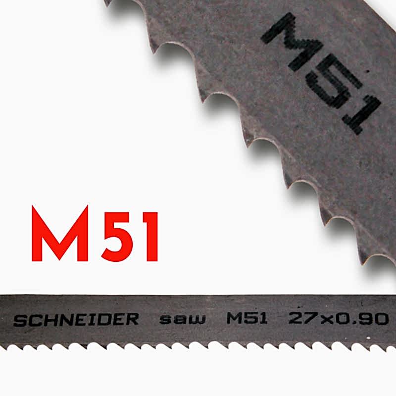 Özellikle paslanmaz çelik ,Takım çelikleri , Sertleştirilmiş çelikler , Alaşımı yüksek alüminyum bronz gibi sert malzemelerin kesimnde M51 bimetal şerit testereler üstün performansı ile ülkemizin önde gelen paslanmaz malzeme kesen işyerlerinde , fabrikalarda ve imalat atölyelerinde kullanılmaktadır.69 HRc sertliğinde sağlam aşınma direncine ve uzun bıçak ömrüne sahiptir.